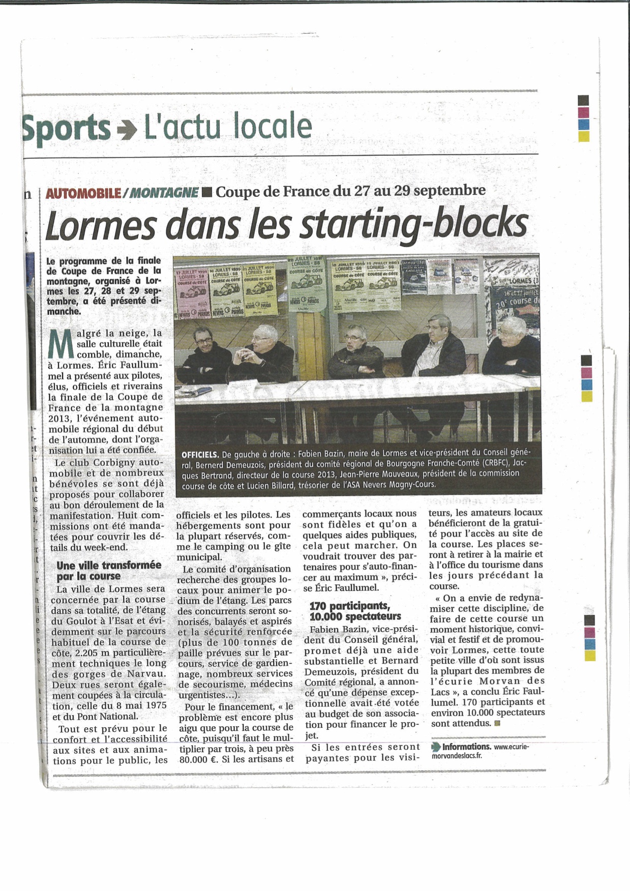 Ce dimanche 24 février 2013, lors de l'assemblée générale de l'Ecurie Morvan des Lacs, s'est déroulée la présentation du programme de la finale de la coupe de France de la Montagne aux pilotes, élus, officiels et riverains.